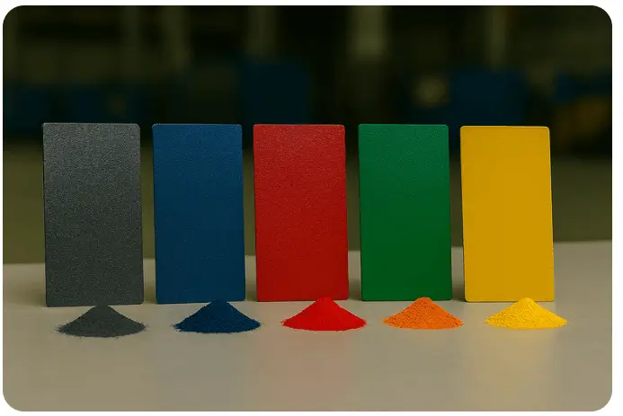 تطوير وتصنيع الطلاء الصناعي بالبودرة، مع مجموعة واسعة من الألوان والتشطيبات الصناعية عالية الجودة.